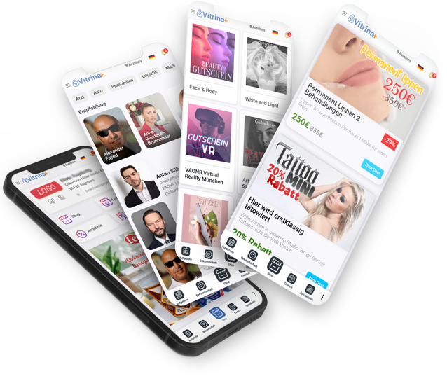 Füllen Sie einfach das Formular auf der Website aus, erhalten Sie Zugang zum Dashboard, fügen Sie Ihr Geschäft hinzu und starten Sie mit Ihrer eigenen App Vitrina Plus.